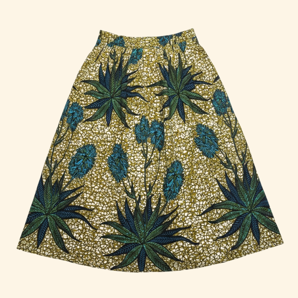 La jupe longue LAZOEY en wax, c'est du 100% en coton, c'est une pièce unique que j'ai confectionnée à la main à Troyes !
